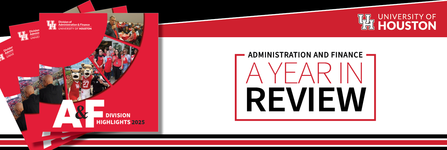 Welcome to the Division of Administration and Finance at the University of Houston, comprised of more than 1,100 employees within nine business units reporting to the Senior Vice President for Administration and Finance.