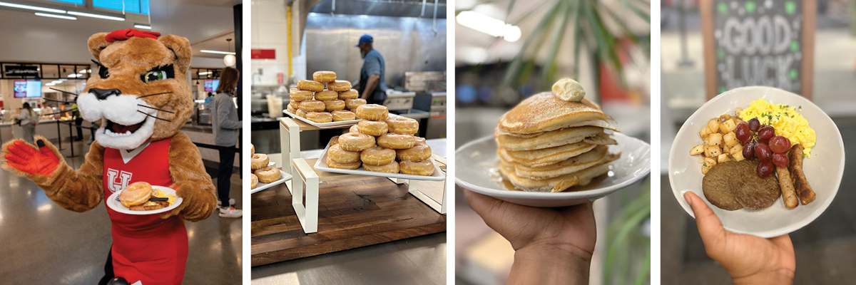 The biannual tradition, which offers free breakfast to students before final exams begin, has evolved significantly since its launch in 2008. Originally a pancake event with all the trimmings at M.D. Anderson Library, Finals Mania moved last year to Cougar Woods Dining Commons. Along with the new location came an expanded menu of freshly prepared breakfast favorites.