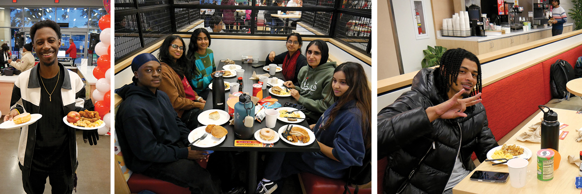 That vibe included an on-site DJ who kept the energy high throughout the evening. Students enjoyed a “breakfast for dinner” menu featuring biscuits and gravy, chicken and waffles, pancakes, vegan sausage, breakfast potatoes, and classic scrambled eggs.