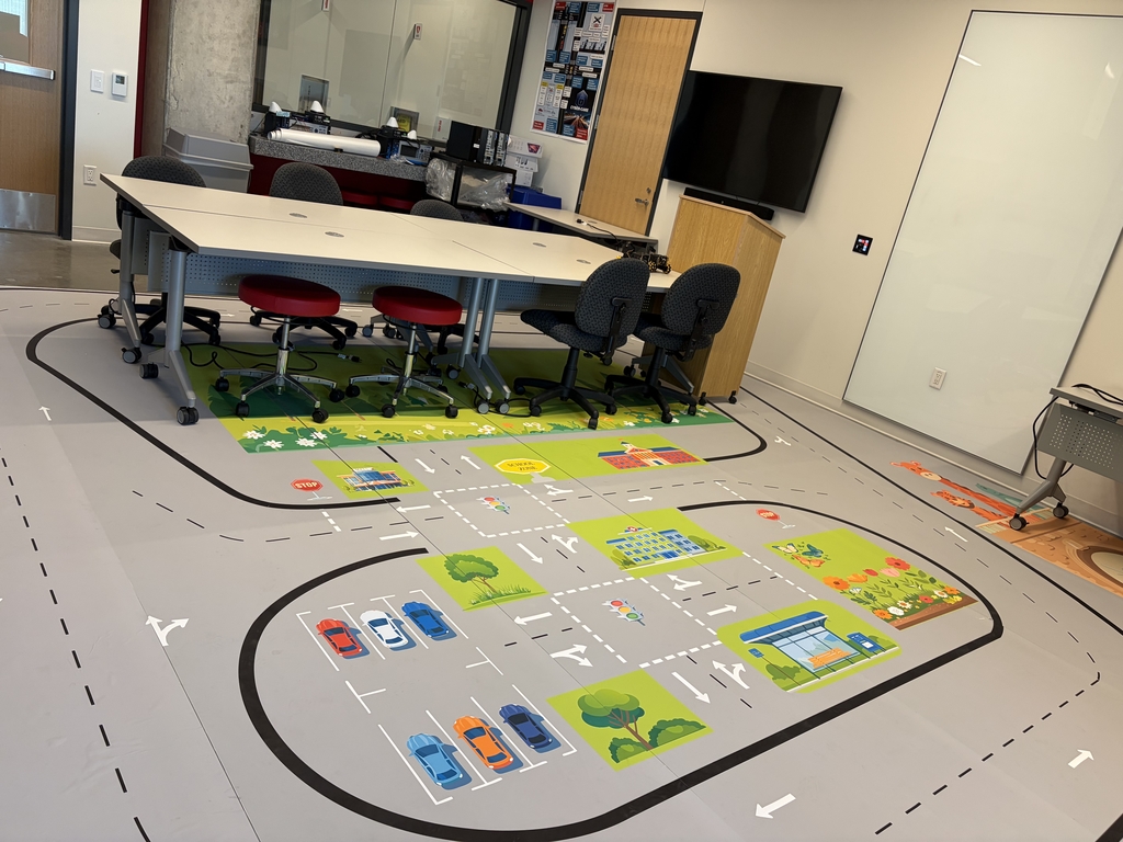 This test bed is a small-scale indoor environment designed to support the development and evaluation of CAV, ATMS, AI for transportation and next generation transportation technologies, etc. It simulates an urban road network and highway, allowing researchers and students to test navigation, perception, and decision-making algorithms, etc., in a controlled setting.
