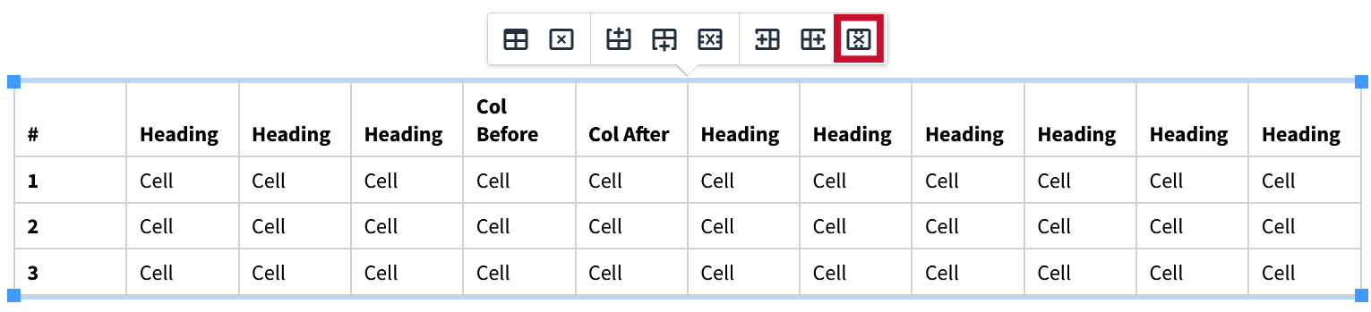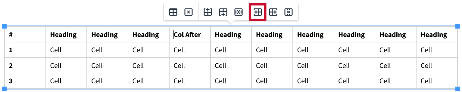 To insert a column to the left of one, simply select the column you would like to add a new one to the left of and click the “Insert Column Before” button.