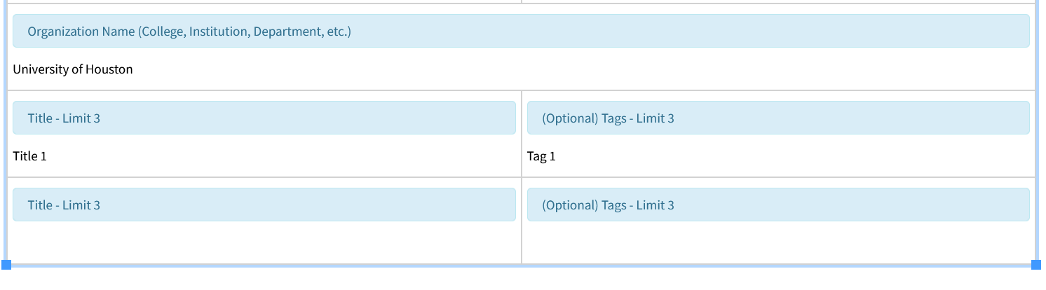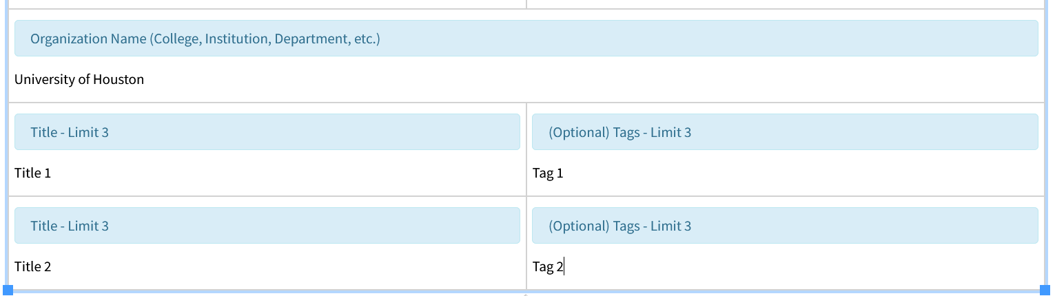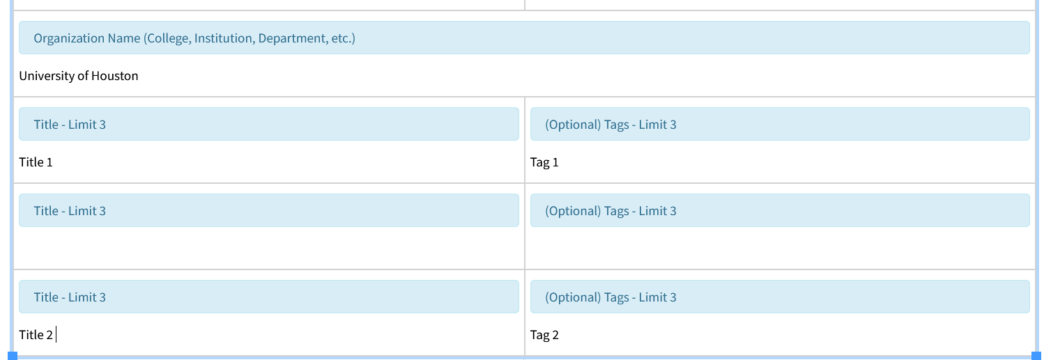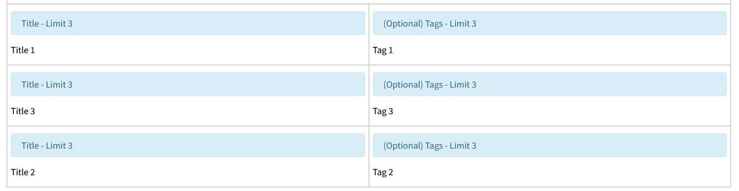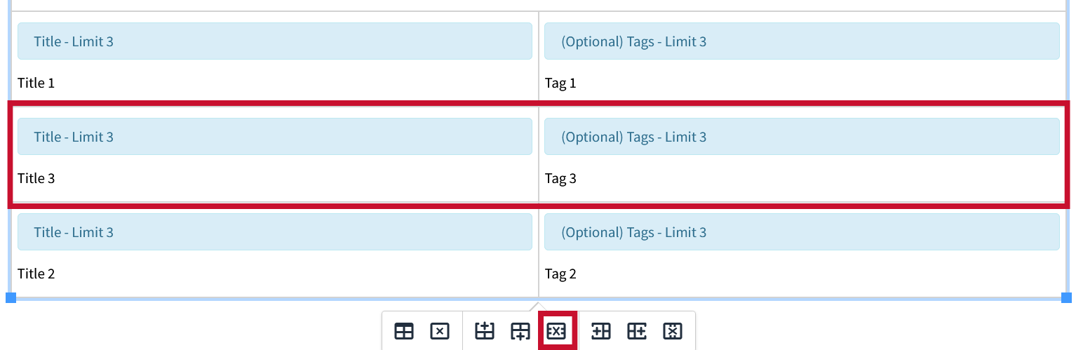 In this instance we would select the last row, which is the one with the Title and Tag fields, since we would like additional instances of each.