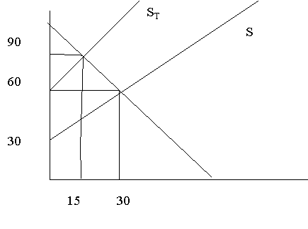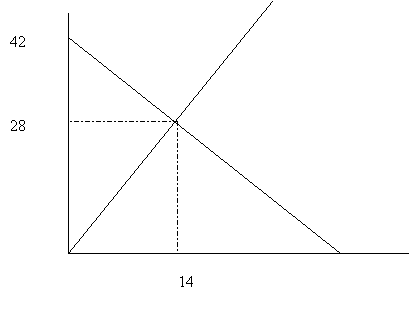 b) the supply and demand curves intersect at P = $28, Q = 14