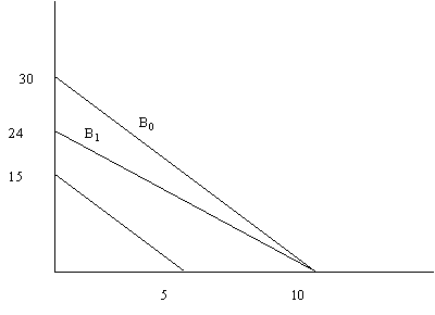 b) If plays cost $12 and movies cost $4, the budget line is B0, which has exactly the same slope as Paula’s indifference curves. She will be indifferent to all of these bundles