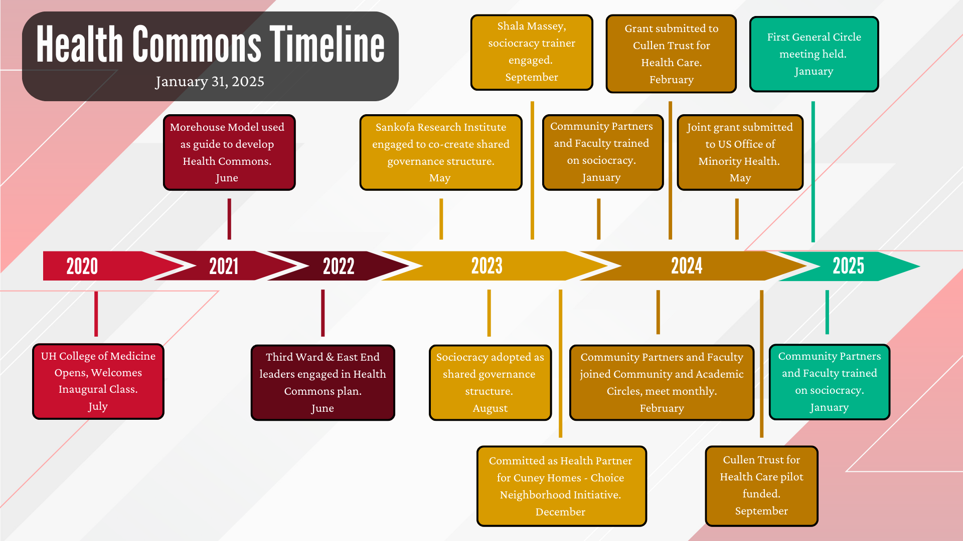 Health Commons is the College of Medicine’s model for community engagement that prioritizes shared leadership. Through an intentional approach to power-sharing, community partners and the College co-create policies and programs to improve community health. Current projects, prioritized by the community, include starting a food buying club and food cooperative at Cuney Homes in Third Ward.