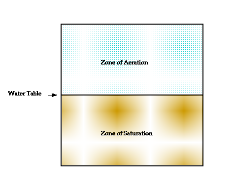 Some of the water that soaks into the ground adheres to particles in the soil - the belt of soil moisture. Water not held in this belt migrates downward until it reaches a zone in which the pore spaces in the material are completely filled with water - the zone of saturation or the vadose zone. Pores in the overlying zone of aeration are filled with a mixture of air and water. The contact between these two zones is the water table.