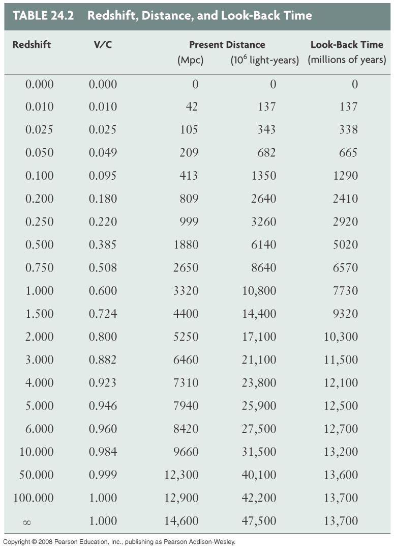 Allows determination of overall "size" and age of Universe [Chaisson Table 24-2]: