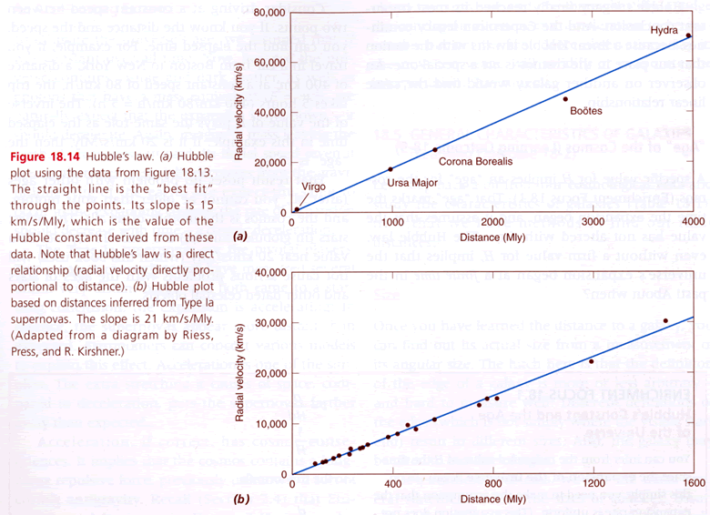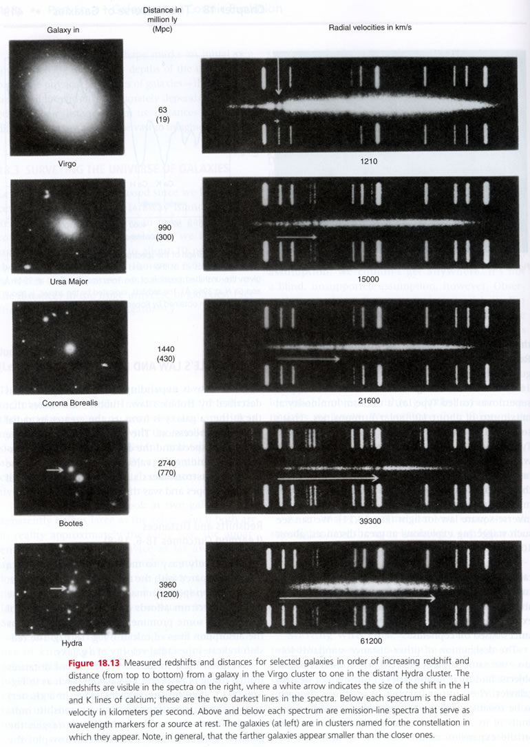 Hubble's Law relates redshift to distance [Chaisson section 24-3]