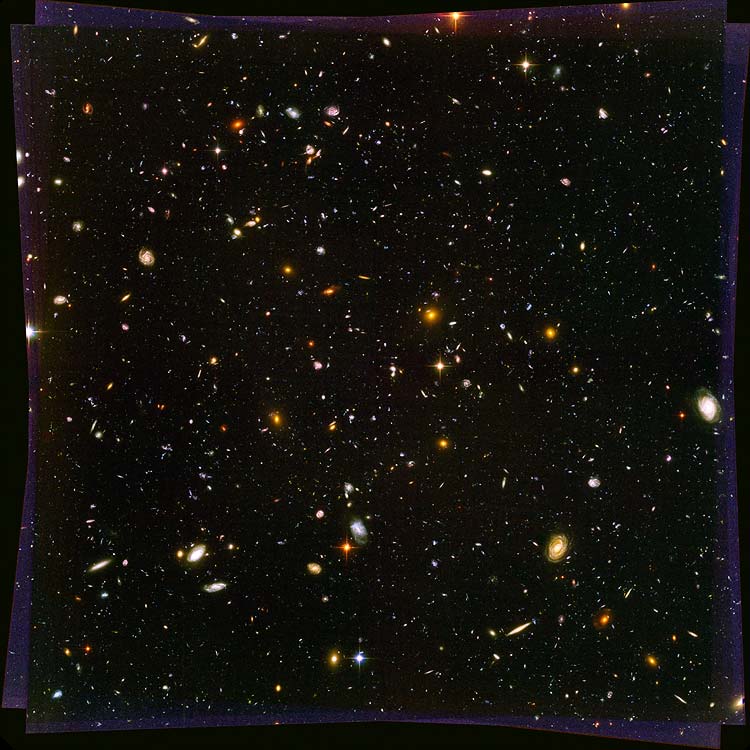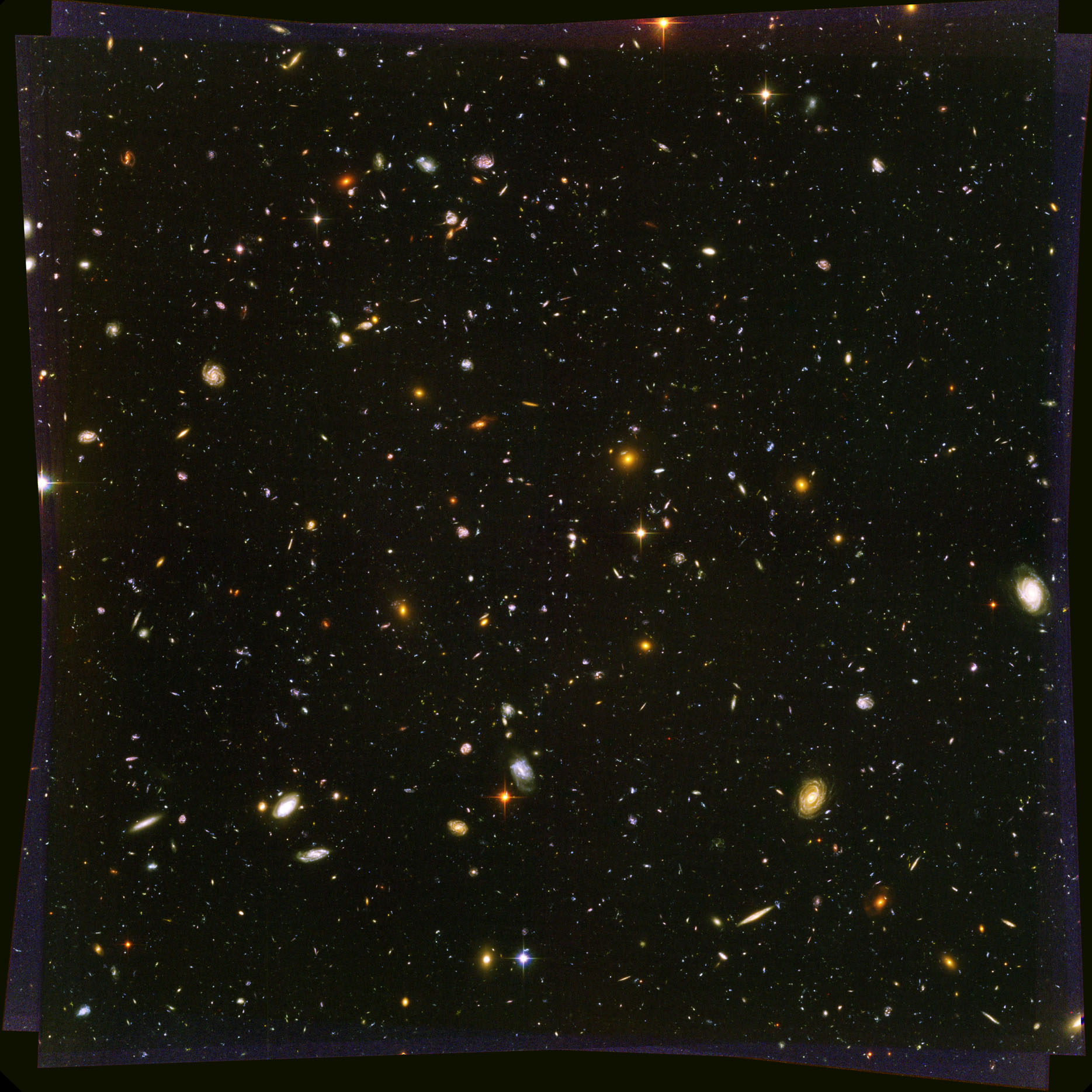 Hubble Ultra Deep Field (HUDF) studies an "empty" 3-arcminutes of sky (img1, img2). Think looking into tiny space defined by an eight-foot-long soda straw.