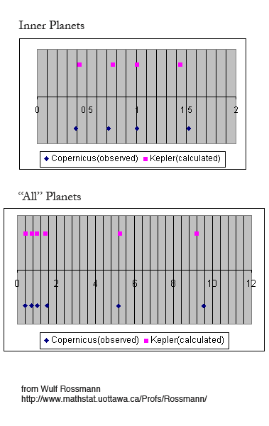 Placing the 6 planetary spheres between the 5 perfect solids actually leads to spacings for the planets which match the data. (note: to this day there is really no satisfactory theory for why the planets are spaced the way they are; it is often presumed to be due to chance.)