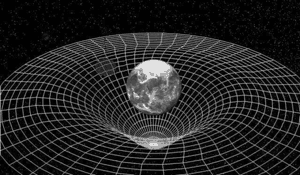 In 1916, Einstein addressed these two contradictions (the instant propogation problem and the equivalence of gravity and acceleration) by reconstructing the theory of gravity. Einstein presented the world with a new understanding of the world- his theory of general relativity. In this theory, space is not an empty void, but an invisible structure called spacetime. Nor is space simply a three-dimensional grid through which matter and energy moves. It is a four-dimensional structure whose shape is determined by the presence of matter and energy. Around any mass (or energy), spacetime is curved. The presence of planets, stars and galaxies deform the fabric of spacetime like a large ball deforms a bedsheet. (This deformation occurs in four dimensions, so the two-dimensional bedsheet is a limited model. Try visualizing these depressions on all sides of a planet to build a more accurate image of this concept.)