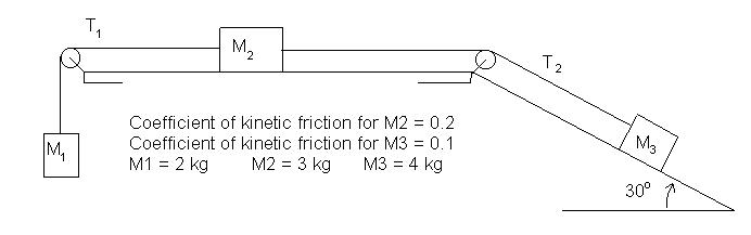 the figure. M2 is also attached to mass M3 on the
