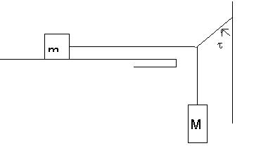 to the suspended mass M1 by a string and a pulley as shown in